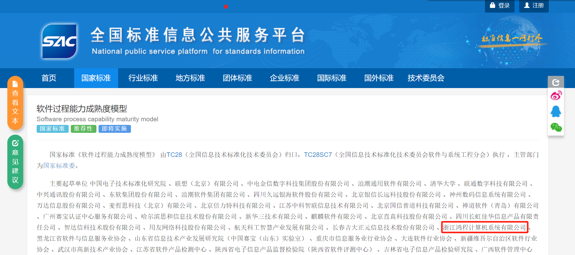 近日,國家標準化管理委員會正式發布了國家標準GB/T 45989-2025《軟件過程能力成熟度模型》(Software process capability maturity model),將于2026年2月1日起正式實施。作為起草單位之一,鴻程系統全程深度參與了標準的制定工作。這是我司首個參與起草編制的國家標準,標志著公司深厚的技術實力和行業實踐獲得了國家級認可。